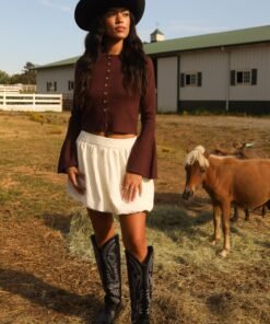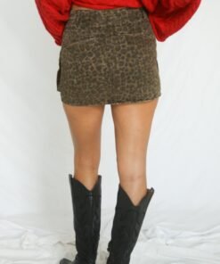 This isn’t your average denim mini. Bold leopard print meets utility with functional cargo-style pockets, giving you equal parts wild and practical. The ultimate statement skirt – pair it with basics and let the print do the talking.