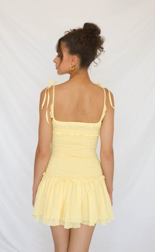 Brighter than the summer sun, the Lemon Drop Ruffle Mini Dress is as cute as can be. This bright yellow dress features a smocked bodice, drop waist and tiered ruffle skirt along with additional ruffle details and adjustable tie straps. Style it with sandals and toss on a denim jacket for those cool summer nights.