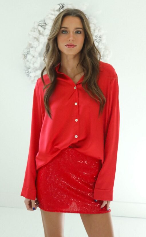 Anything but a basic button down! The perfect party fit styled with the All Night Skort, or tuck into dark wash denim for an everyday vibe.